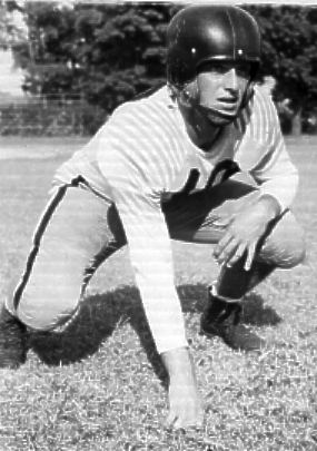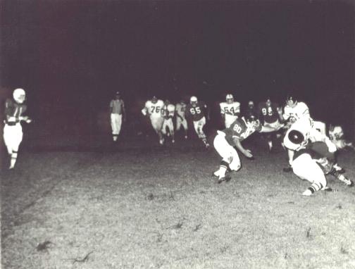 Although he was a valuable member of the AMERICAN REBELS, a semi-pro football team that enjoyed five years of success, and one undefeated season, against teams all over the Southeast, Ed Cleveland put together a group of ex-Lineville, Alabama stars and coached and played in this game against the REBELS. The REBELS are in dark uniforms and Ed is somewhere on the ground in this picture. Paul Glosson also played for the REBELS and was the only player on the team to ever return a kick-off for a touchdown (against Biloxi, Miss.). Lathan "Pee Wee" Hudson was the starting Safety all five years. He's number 11 in the picture. Oddly enough, Ed, Paul, and Pee Wee were the game Captains in this contest.