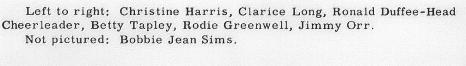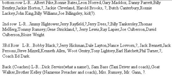 Coach Hayes, Earl 'Wild Man' Hatchette, Jetty Ellison, Wanda Humphreys, Coach Cunningham,Ronald Paul 'Rusty' Wesson ...(back row) Wayne 'Cootie' Carter, Jerry 'Scoots' Williams, Larry 'Bo' Wyatt, Lathan 'Pee Wee' Hudson