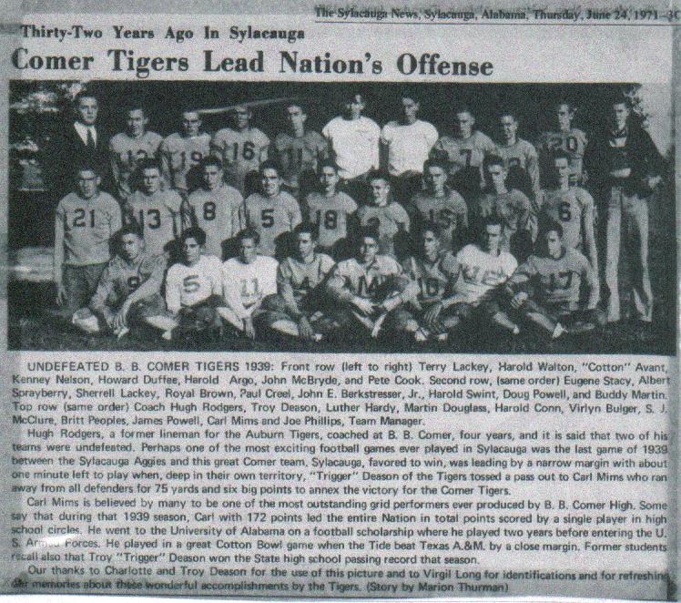 Sylacauga/Comer Football Game '52